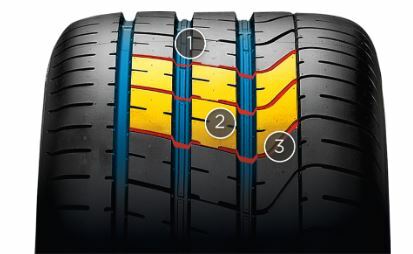 P ZERO™. Настоящая веха в развитии продуктовой линейки Pirelli, шины P ZERO™, выбраны в качестве оригинального оборудования для самых мощных автомобилей, существующих на рынке. Их асимметричный рисунок протектора улучшает эффективность торможения и управляемость. Выдающиеся характеристики на мокрой поверхности с повышенной безопасностью в ситуациях потенциального аквапланирования. Новая резиновая смесь из нанокомпозитного состава обеспечивает максимальное сцепление и устойчивость. Конструкционная целостность шины улучшает реакцию на рулевое управление, что очень важно при спортивном вождении и также обеспечивает равномерность износа протектора. Специальные S-образные канавки протектора снижают уровень шума в салоне, повышая комфорт водителя.